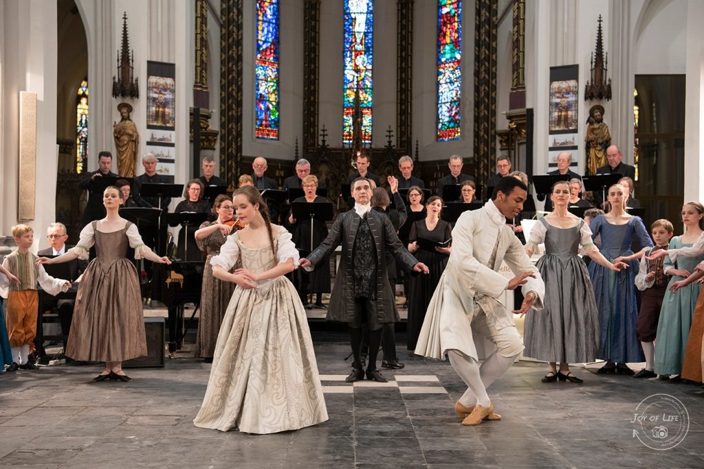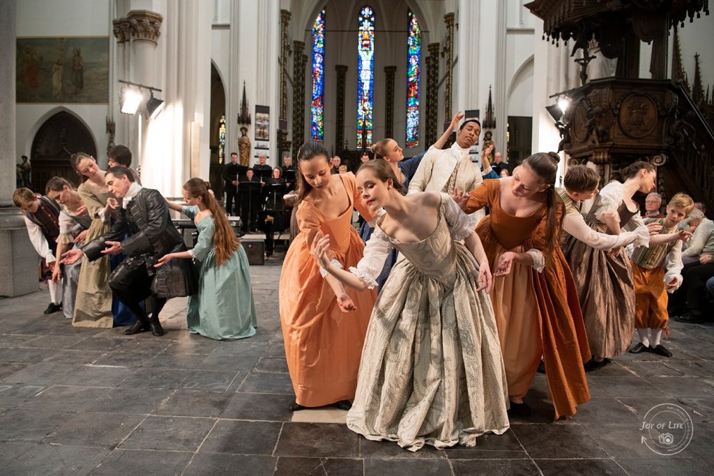 Een Stabat Mater is een muziekstuk dat vertelt over het verdriet van Maria, toen ze haar zoon Jezus aan het kruis zag sterven. Ingolf Collmar, choreograaf van ons Modern Barock Ensemble, creëerde een barokdans-choreografie op de muziek van Koen Dejonghe.